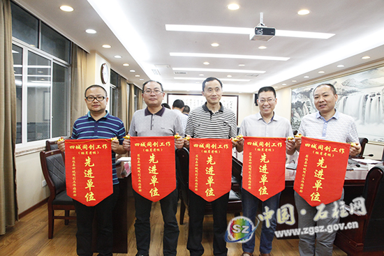 本网讯(记者 张琼慧 文/图)6月26日,我县召开“四城同创”专项整治和网格帮联工作会,专题研究食品安全专项整治工作,并向获得5月份“四城同创”按月考核结果第一名的5家单位颁发了流动红旗。