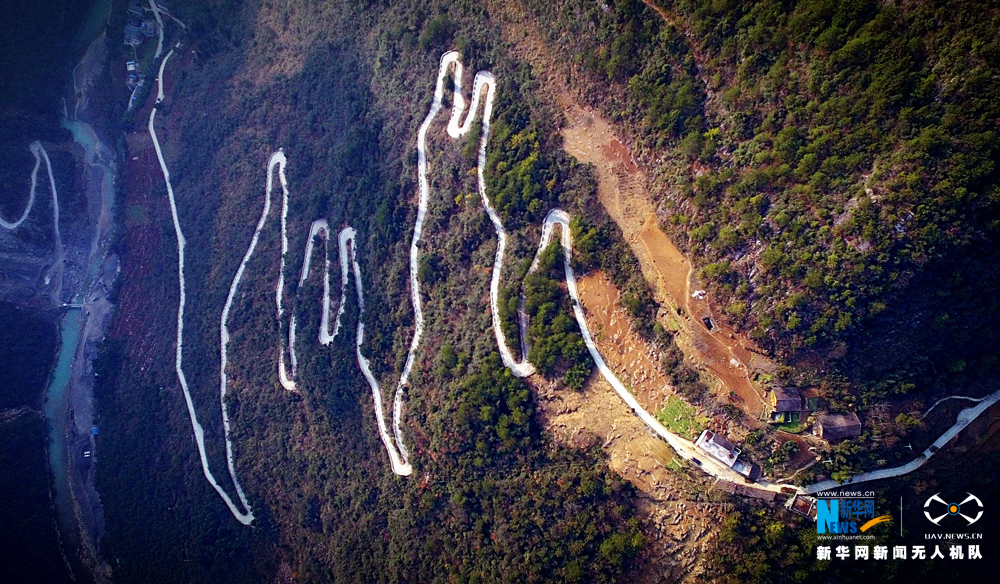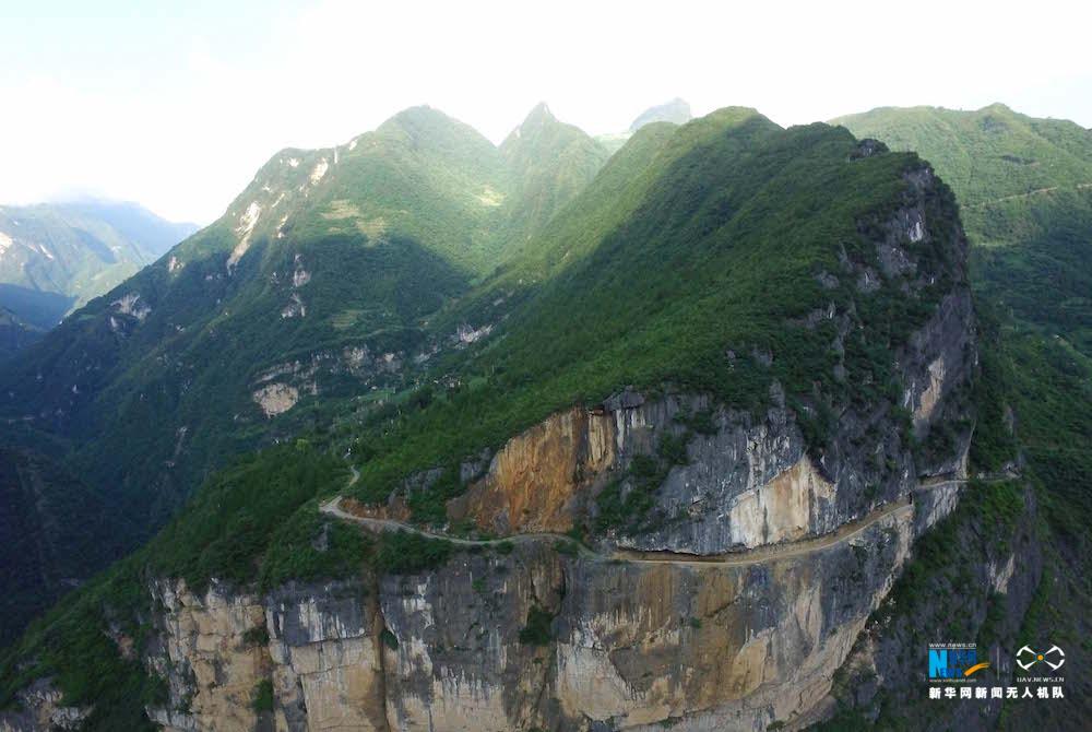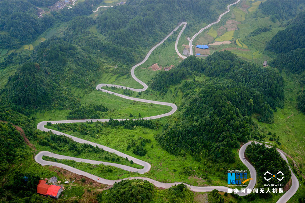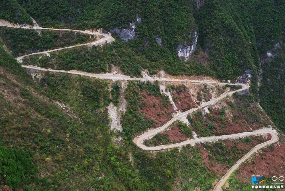 ????重庆市巫溪县兰英乡西安村修建的西安路,总里程18.688公里,全路段海拔落差近900米,是连接重庆巫溪县兰英乡场镇与西安村的唯一干道。西安路共有33个回头线,所处地方地质复杂,山势险峻,无水无电,施工现场甚至无合适的场地架设大型机械作业设备,修路过程十分艰辛。图为2016年8月,航拍视角下的西安路。新华网 李相博 摄 飞手:郑杰