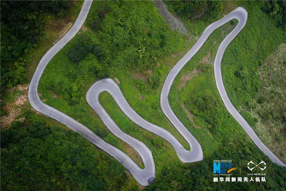 ????图为2017年9月,无人机航拍“45道拐”部分路段,拐与拐之间有长有短,拐点有急有缓。新华网 李相博 摄 飞手:郑杰