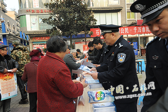 ??? 本网讯(记者 周伟?通讯员 谢猛?文/图)为引导公民遵法守法,自觉抵御恐怖主义思想侵害,积极配合参与反恐工作,2017年12月28日,县公安局在县城玉音广场开展反恐宣传活动。