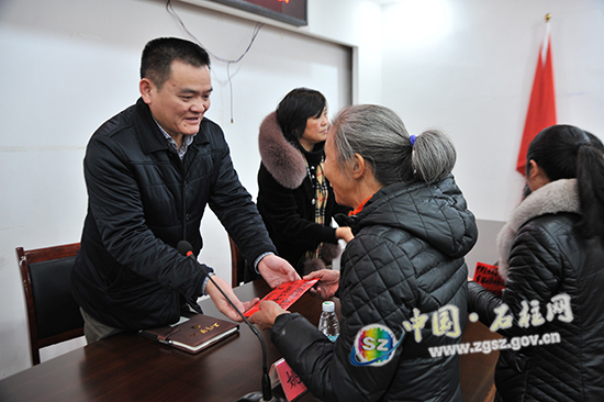 姚庆江(左一)为救助对象发放救助金