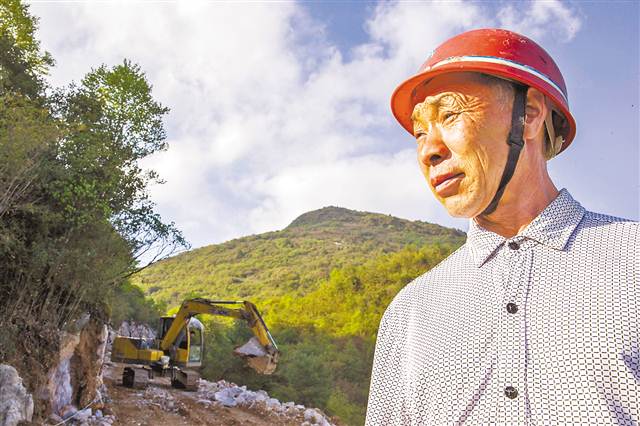 2016年5月10日,巫溪县红池坝镇中岗村,林荣成看着正在施工的机耕道。